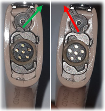 توجه : گاهی به اشتباه بیماران وقتی قفل در حالت بسته است پروسسور را از باتری جدا می کنند که این امر سبب شکسته شدن باتری و پروسسور می شود. ازینرو لازم است قبل از جدا کردن پروسسور از باتری قفل را چک کنند که در حالت بسته نباشد.